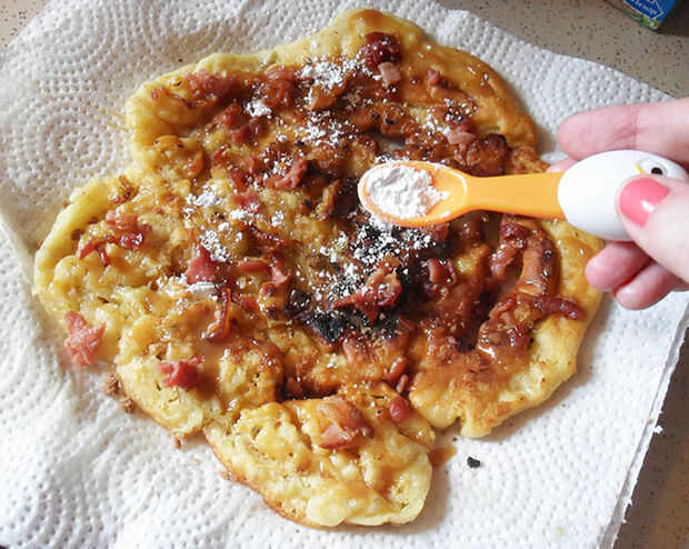 Y por último, qué torta del embudo se precie podría ir sin una pizca de azúcar en polvo. Hacer esta parte al gusto, pero tenga cuidado de no ahogar sus otros sabores.