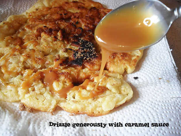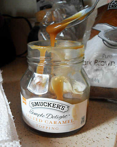Use una cuchara para rociar la superficie generosamente con la salsa de caramelo. He usado salsa de una Smucker caramelo salado.