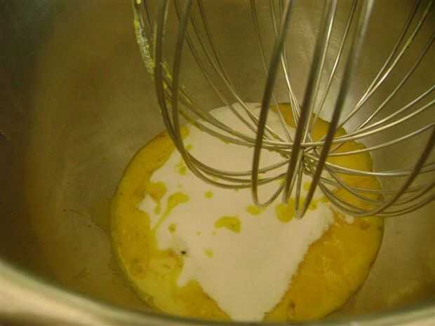 Batir yemas de huevo y el azúcar hasta ligero y mullido