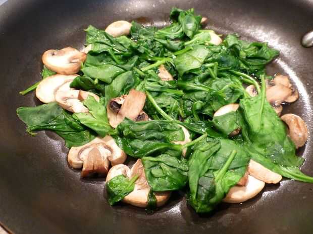 Agregar en las 8 tazas de espinacas, una vez que los champiñones estén tiernos y continuarán salteando todos los artículos para otro 1-2 minutos o hasta que la espinaca ha vuelto marchitas.