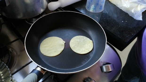 1 minuto de cada lado polvilhar o farinha de milho. Se não para assar, cobrir com pano para sacar macia.