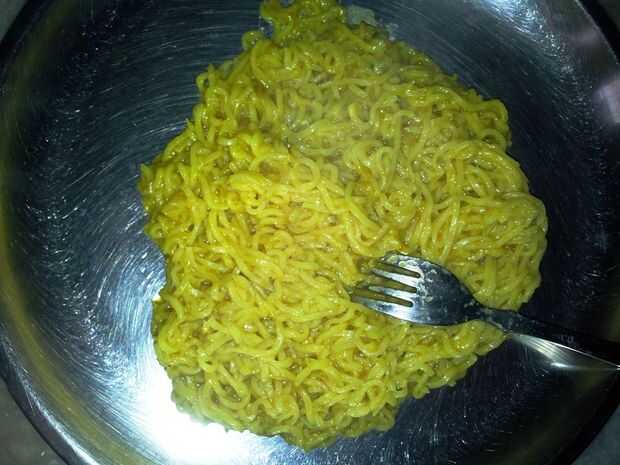 Cocinar tu marca de fideos instantáneos según las instrucciones en el paquete de fideos. Maggi fideos requieren cocinar por unos 3-5 minutos o hasta todo el agua en la bandeja se reduce. Para esta receta, rompí los fideos crudos en trozos más pequeños antes de cocinarlos. Además, se cocinan los fideos lo suficiente por lo muy poco 'sopa' sigue siendo. No queremos demasiada sopa de la tortilla.