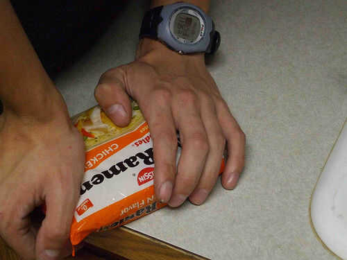 Ahora agregue el paquete entero sabor al agua utilizar mezcla tenedor para mezclar y colocar el recipiente en el "magnetrón inducida por aparato", normalmente puse mi "magnetrón inducida por el aparato de la calefacción" en alguna parte alrededor de 4 minutos (tengo un 1500 vatios "magnetrón inducida por el aparato de la calefacción", que diría han trenzado de energía).