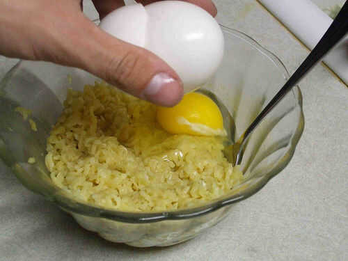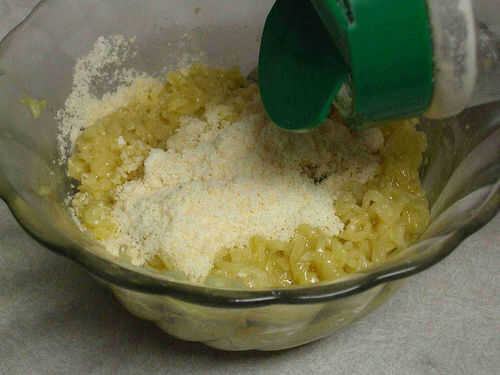Es la hora de huevo. crack abre el huevo y colocarlo en el bowl, mezcla en y que añadir una buena ración de queso parmesen (un poco menos de media taza) agregar la sal, pimienta más que usted piensa que necesita y cualquier otros condimentos que quieras, en mi caso no Encore sal condimento sólo porque es lo tuve que poner todo y sabe bien. francamente podría agregar cualquier cosa añadirías para una tortilla normal, todavía tengo que jugar con otras cosas, pero eso no quiere decir no.