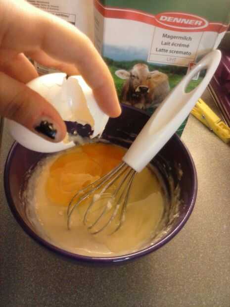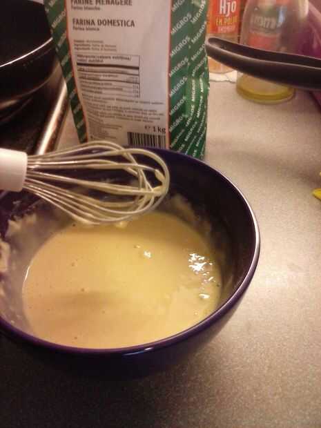 3. añadir agua/leche (sin huevo, es mejor utilizar leche, con huevo, que ambos funcionan bien).