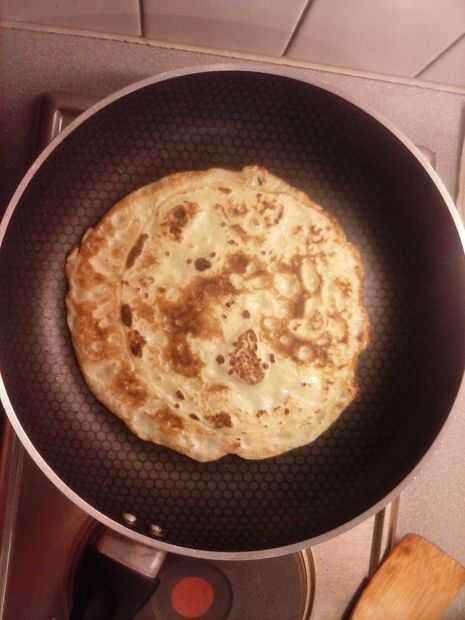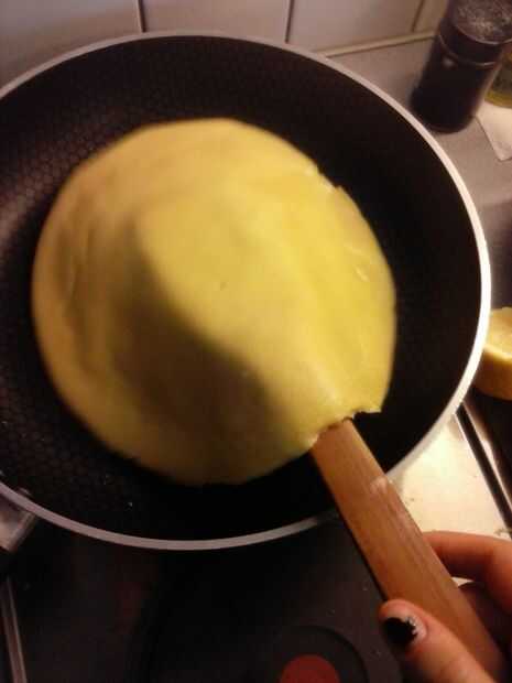 Notarás que, poco a poco la masa comenzará como una luna llena (siempre me recuerda a la luna que ves en las películas de Georges Méliès). Cuando estás seguro de que la tortilla no rompa, vuelta. Se debe cocinar hasta que se convierte en rubio con algunas manchas marrones. Puede volver a cualquier momento que usted necesita.