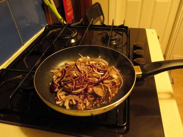 He decidido saltear la cebolla en la mantequilla en lugar de aceite para dar a las cebollas un sabor mucho más rico pero se puede utilizar aceite, así, la parte más importante en este paso es que cocinar las cebollas hasta que estén suaves y luego los dejo cocer a fuego lento en un superficial baño de vinagre balsámico.