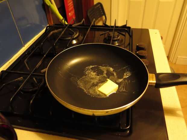 Cuadro 2. una vez que la mantequilla se haya derretido le permiten llegar hasta calor lo importante es que no deje que la mantequilla de humo, mantequilla quemaduras increíblemente rápido y una vez quemar totalmente destruye el sabor. a menudo le dirá que permita que la bandeja de humo antes de agregar los ingredientes. se trata sólo de ciertos aceites y no mantequilla.