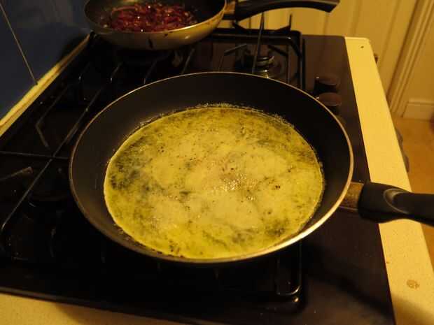 Cuadro 4. Una vez que la mantequilla esté burbujeante Vierta las claras de huevo, si tienen fríos se enfríe la olla y se convierten en goma un poco más como en vez de crujientes.
