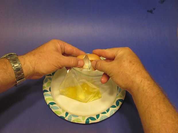 Romper los huevos directamente en la bolsa de zip. Por qué ensuciar cualquier bols!