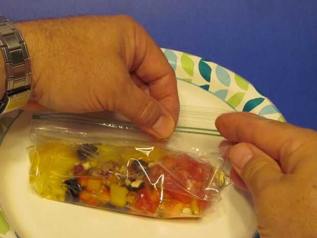 En este punto que todos ponen sus iniciales o nombre en la bolsa con un marcador permanente. (De lo contrario podrías comer alguien de otra obra maestra).