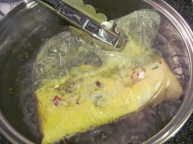 Utilice tenazas para tirar las bolsas fuera de la olla de agua hirviendo. Y distribuir las tortillas a sus legítimos propietarios. Dejamos que enfríen un poco y otros que tener cuidado ya que pueden haber bolsas de agua caliente en el exterior de la bolsa y en la cremallera PRECAUCIÓN.