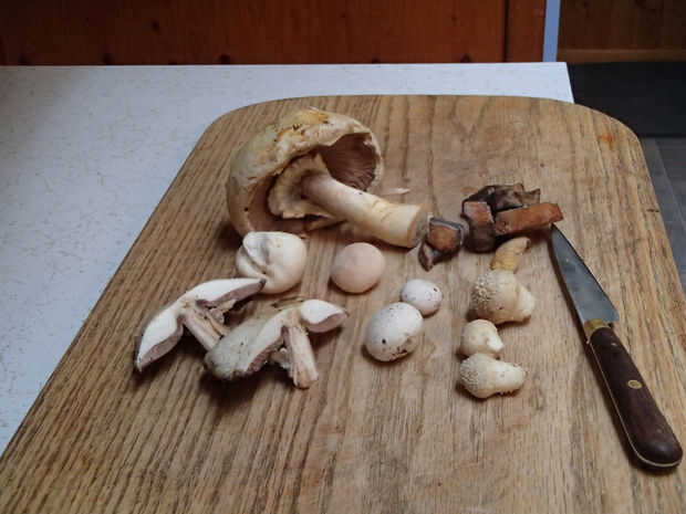 Ha sido muy mojado la semana pasada, por lo que era fácil de encontrar algunos "setas de Prado" (prácticamente idénticos a los de la tienda de comestibles, aunque aproximadamente 10 veces el tamaño) y "puff" - ambas setas fácil para principiantes identificar con seguridad.