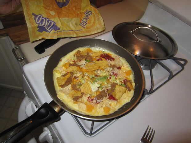 Porque nuestra campana de taco-taco tenía lechuga en él, decidimos dejarlo para el final. Lechuga cocida no es absolutamente una delicia. Cuando que agregamos a esto, la base de la tortilla era casi totalmente cocida.
