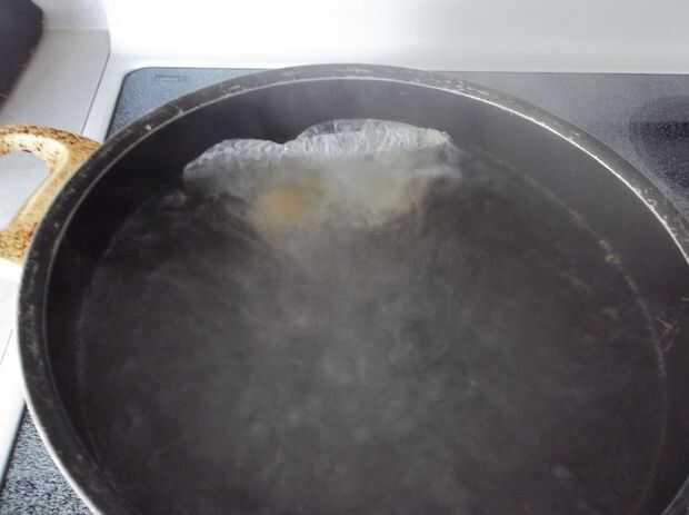 Luego cuando las aguas hirviendo, un temporizador de 5 minutos. y colocar la bolsa en. Iniciar el temporizador