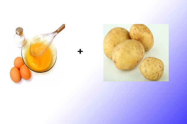 1. en el recipiente, mezclar los huevos y agregar sal (como quieras) al mismo tiempo.