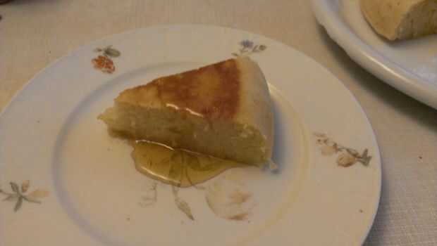 Resultan la crepe gigante en un plato, rebanar y servir con jarabe de (arce) o fruta!