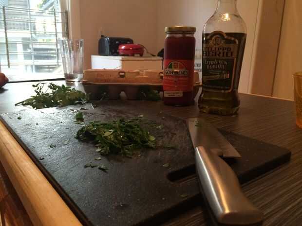 Se reúnen sobre un puñado digno de perejil, manojo hacia arriba en la tabla de cortar y le dan una tajada áspera. Recuerde que esto es tortilla de Avo y ella siempre cocina estilo rústico, país de origen!