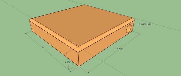 Dimensiones 8 "X 7 7/8" X 1 1/2". Arena o router de 1/4" redondo-over en el borde superior de la pieza. Como se muestra.