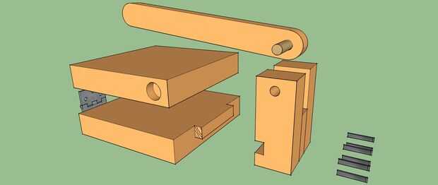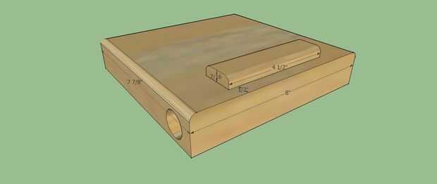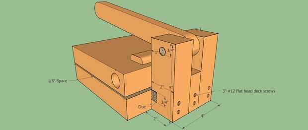 La última pieza a instalar es el bloque del espaciador en la tapa. El espesor del bloque es determinado por la cantidad necesaria para proporcionar presión a la tapa de la manija. Encolar y atornillar el bloque en su posición como se muestra.