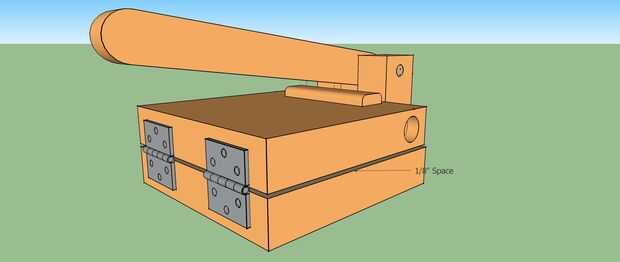 Coloque la pieza superior en posición con un espaciador de 1/8" o una cuña entre las dos piezas para actuar como un espaciador temporal para ayudar a alinear las piezas cuando instale las bisagras.