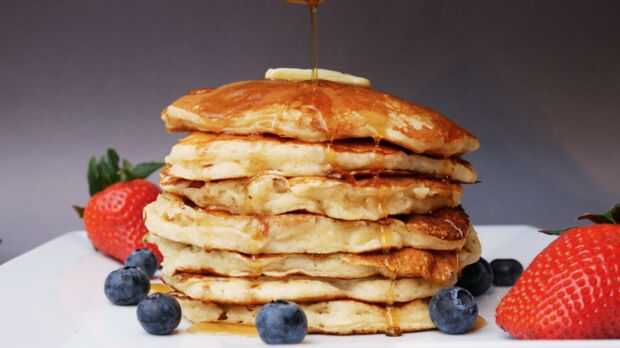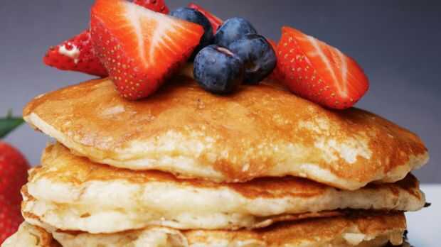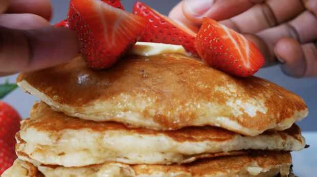 Comenzar batiendo el huevo hasta que ligera y espumosa. A continuación, añadir la mantequilla, suero de leche y extracto de vainilla. En un recipiente aparte mezclar todos los ingredientes secos. Crear un bien y vierta la mezcla mojada en la mezcla seca y poco juntos. Freír las tortitas en una sartén o plancha a fuego medio. Cuando aparezcan burbujas en la parte superior de los panqueques estén listos a "flip". Terminar agregando algún jarabe de arce y su opción de la fruta.