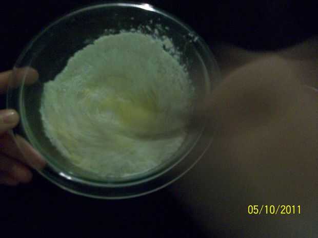Luego añades el 1/8 de cucharadita de azúcar y 1/2 taza de harina. Cuidadosamente mezcle la harina con una cuchara pequeña o tenedor (puede conseguir bastante sucio).