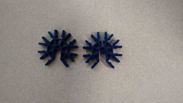 Tomar 2 de las piezas azul y conectar a través de las aberturas. Repita 4 veces más.