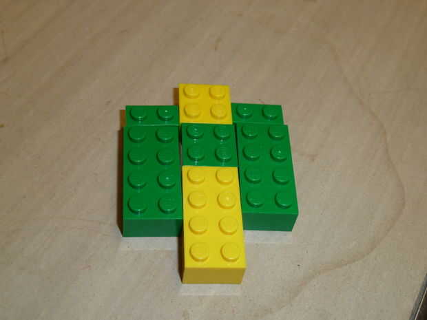 Añadir un verde 1 x 2 en cada lado de la cola. Esto completa la capa 1.