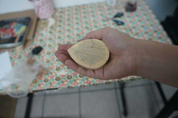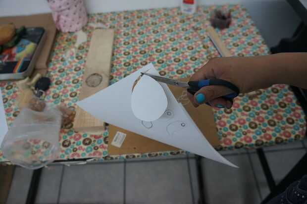 Con las tijeras, cortadas el molde en hojas de papel, coloque la cacerola sobre la madera y trazar el contorno. Esto lo puedes hacer con todas las piezas, usar 2 "madera de la concha de tortuga, madera 1" para las aletas y la cabeza, 3 mm de madera del vientre de la tortuga.