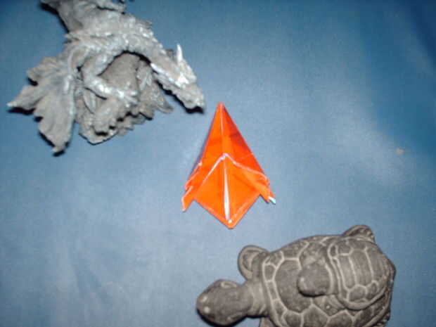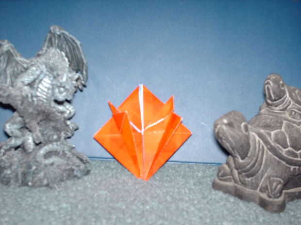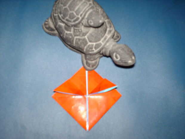 Doble los bordes externos hacia el centro de la pieza. No flipar si te retiras el cuerno como samurai--que se supone debe para suceder. Repita en el otro lado (el Symettricity es vital).