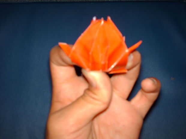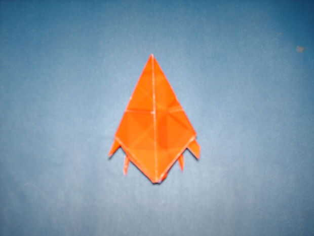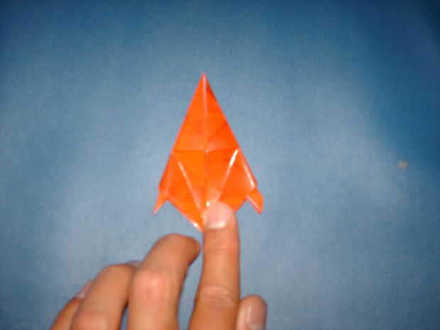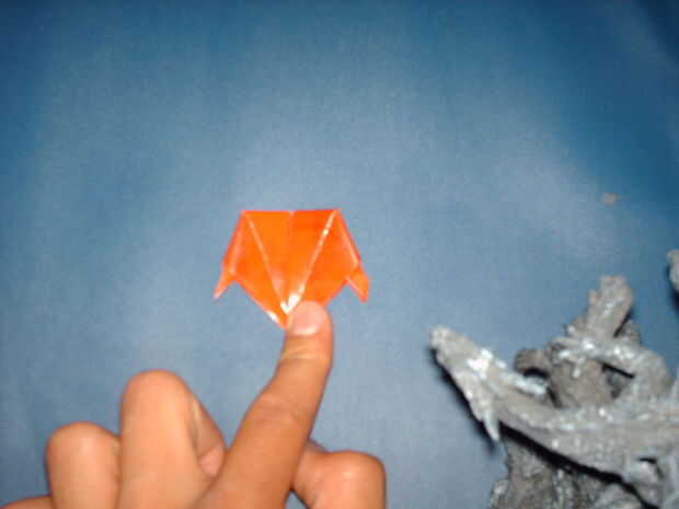 Pliegan las capas superiores (cada lado). Doblar las esquinas superiores como van en el borde inferior. Girar el modelo 180 grados.