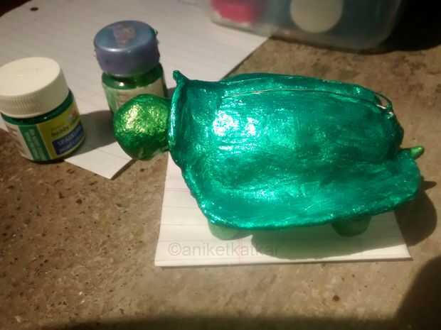 Parte final es colorear a la tortuga. Pintura según su deseo. He pintado la cáscara con acrílico verde claro y el cuerpo verde oscuro. También puede conseguir textura en la cáscara para hacerla más atractiva.
