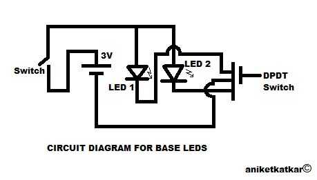 Un switch es un conmutador normal a interruptor de todo el circuito ON/OFF. Mientras que el otro interruptor es un interruptor DPDT para conmutar cual LED es verde o RGB. Sólo un LED puede permanecer ON a la vez.