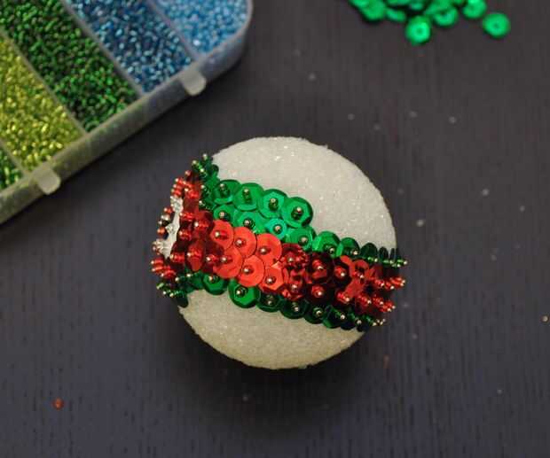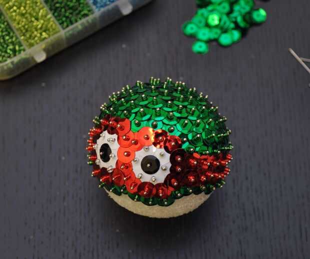 Con la parte superior, quiere dejar espacio para las finales lentejuelas en la parte superior de la cabeza. Deje el campo vacío por ahora. Esto es donde irá la cinta y lentejuelas finales.