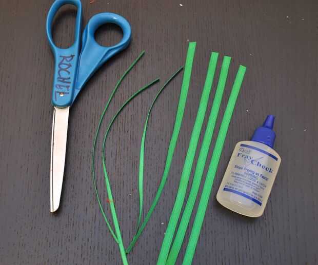 - Poner un poco de pegamento en la cinta y conecte el otro extremo de la cinta como se muestra. Debe formar un aro.