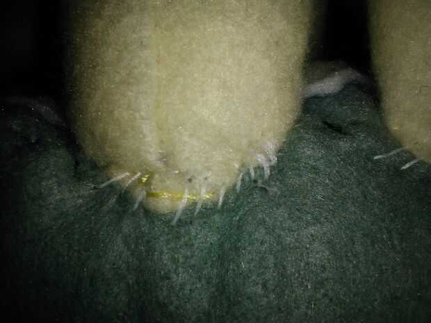 Entonces conecté las garras al cuerpo con puntadas por todo lo alto. Hace delgada así que doble y permite el peluche a sentarse. Luego hice los brazos. Lo hizo un poco fina, para permitir que la aleta. Las aletas de lo original. Jaja.