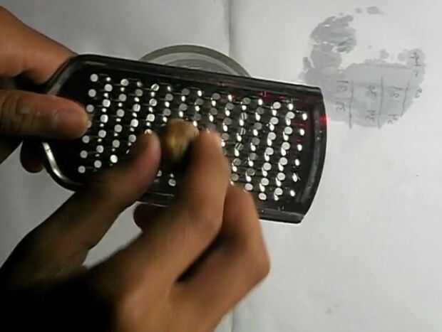 Rallado liso como sea posible en un vaso con caliente / agua caliente