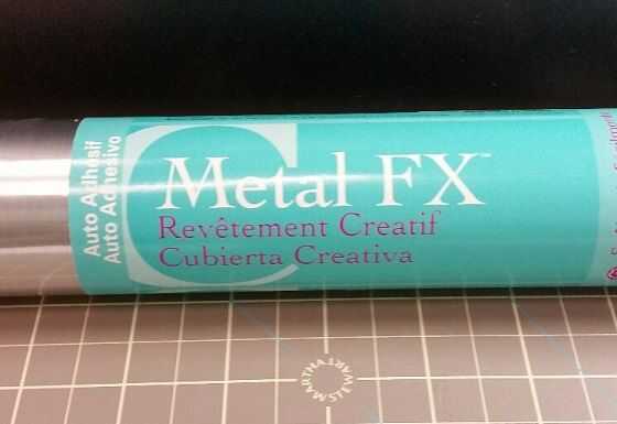 Papel de contacto de aluminio - compré un rollo de papel de contacto Metal FX en Home Depot. Se utiliza para el revestimiento de los estantes, pero funciona perfectamente para esto y muchos de mi proyectos de modelado de papel.