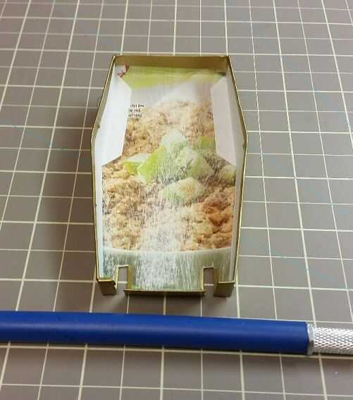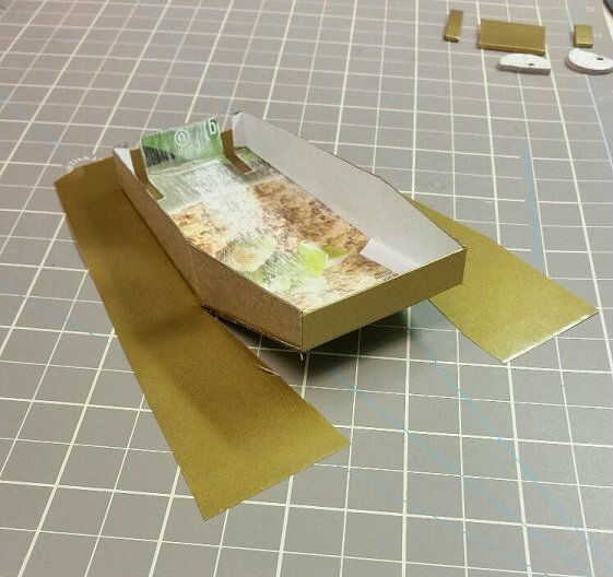 Después de cortar la cáscara, doblar cuidadosamente en forma. Puede que necesite utilizar el borde de una regla para ayudar a persuadir en forma. Después de la cáscara en forma de a, agregar las fichas de cartulina. Estas se pegan en los lados de la cáscara para que las pestañas se pueden utilizar para cerrar para arriba. Recomiendo usar alfileres de la ropa para sujetar piezas pequeñas.