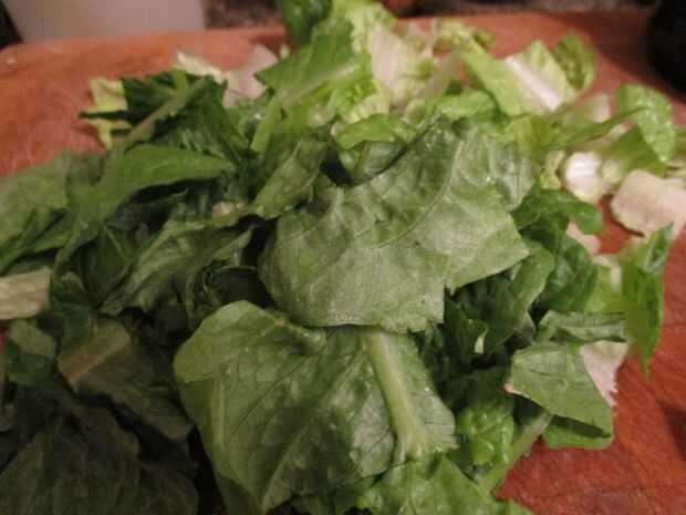 Por ahora el queso se derrita definitivamente, así que es tiempo de decorar tus fichas! Yo generalmente uniformemente rociar mis chiles verdes enlatados alrededor de la bandeja, y luego cubrir todo con un buen puñado de lechugas frescas. Yo prefiero servir el guacamole y la salsa al lado porque si lo pongo todo en la parte superior, mis fichas va empapados! Sin embargo, se trata de su comida, así que hacer lo que quieras!