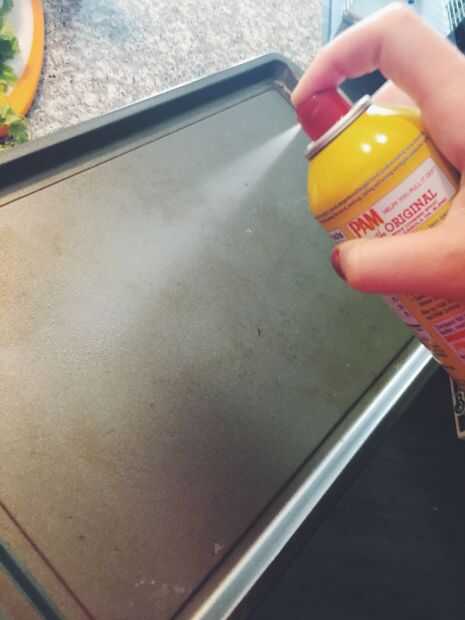 3. Rocíe la bandeja para hornear con aerosol de cocina antiadherente. Figura 3.