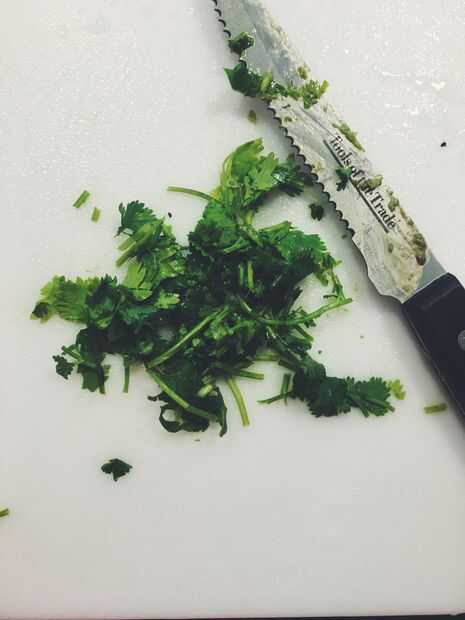 PRECAUCIÓN: Cuando utilice un cuchillo para picar algo como cilantro los dedos una muy cerca de la hoja ir lento si a este proceso como cuchillos son extremadamente afilados y si llegar a cerrar o avanzan rápido le pueden cortarse.