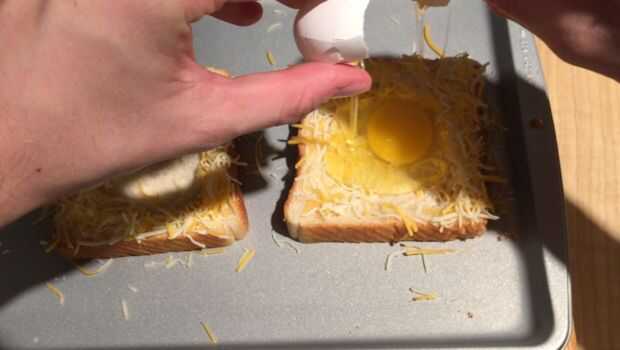 Por último, romper un huevo en el centro de las rebanadas de pan.