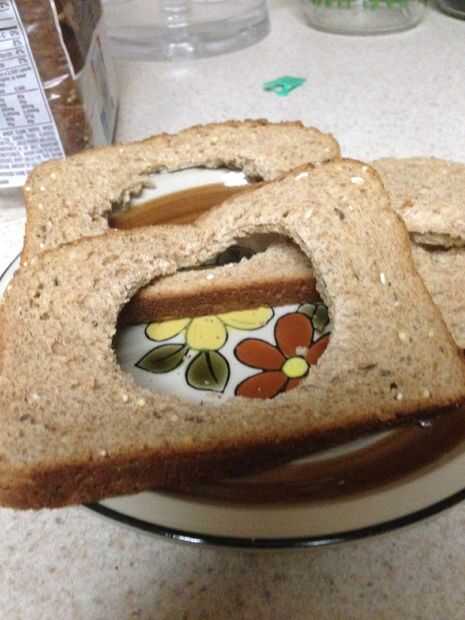 Brindis con montañas rocosas, también conocido como nido de pájaro, huevos de vaquero, huevo en el agujero, huevos de una rana de manta, el Bagel de huevo de elefante, en un agujero, huevos de la casa de gas, Luna huevos y monstruo Tuerto.Tostadas de