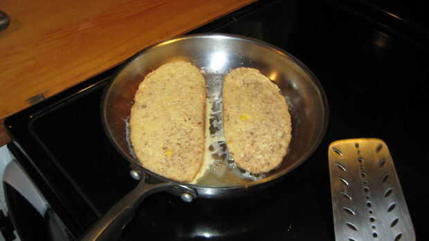 7. Coloque el pan en la sartén y cocinar hasta que estén doradas