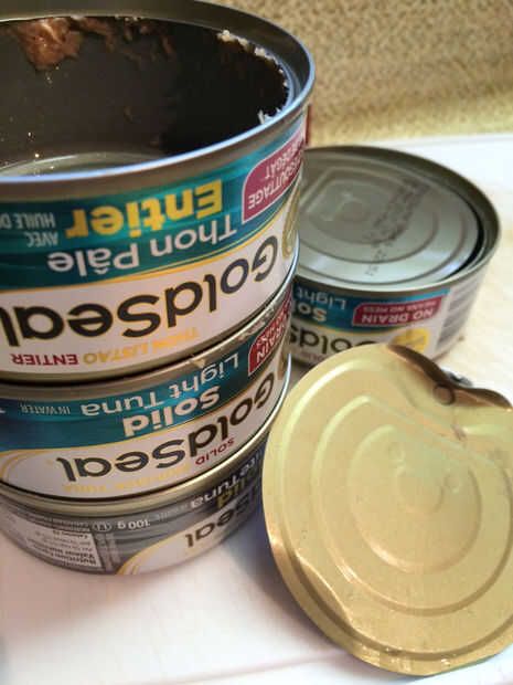 1- consiga un recipiente grande y vaciar todas las latas de atún en el Bol.
