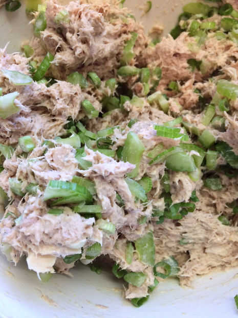 2 - añadir la mayonesa sobre una 1/2 taza en un tiempo de mezcla bien hasta que llegue a la consistencia de atún ensalada. Mezcla final tendrá alrededor de 1.5-2 tazas de mayo