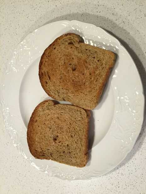 Esto es una preferencia personal, pero hace ligeramente dorada tostada crujiente por fuera pero ligeramente masticable dentro. Todo más oscuro y tiene mal sabor ceniza galletas y cualquier ligero y así puede omitir tostado. Para este pan, quieres ser ligeramente superior al nivel medio, pero varía grandemente con la tostadora.