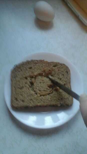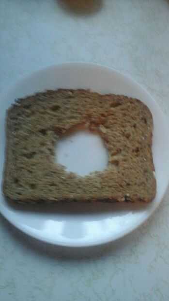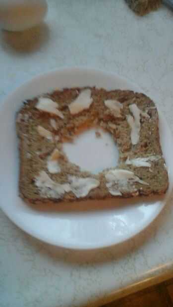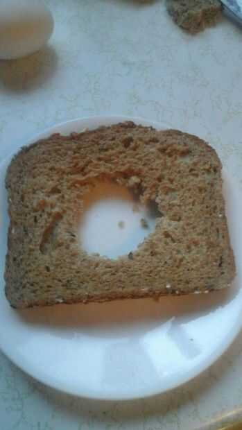 Necesita una rebanada de pan, un huevo y a freír en (utilizo mantequilla pero si tu en la categoría "tratando de bajar de peso un poco" querrá elegir algo un poco engorda menos). OK, así que primero tu solo va a cortar un agujero en el centro del pan. Este es el nido. Ahora unta mantequilla en ambos lados del pan.